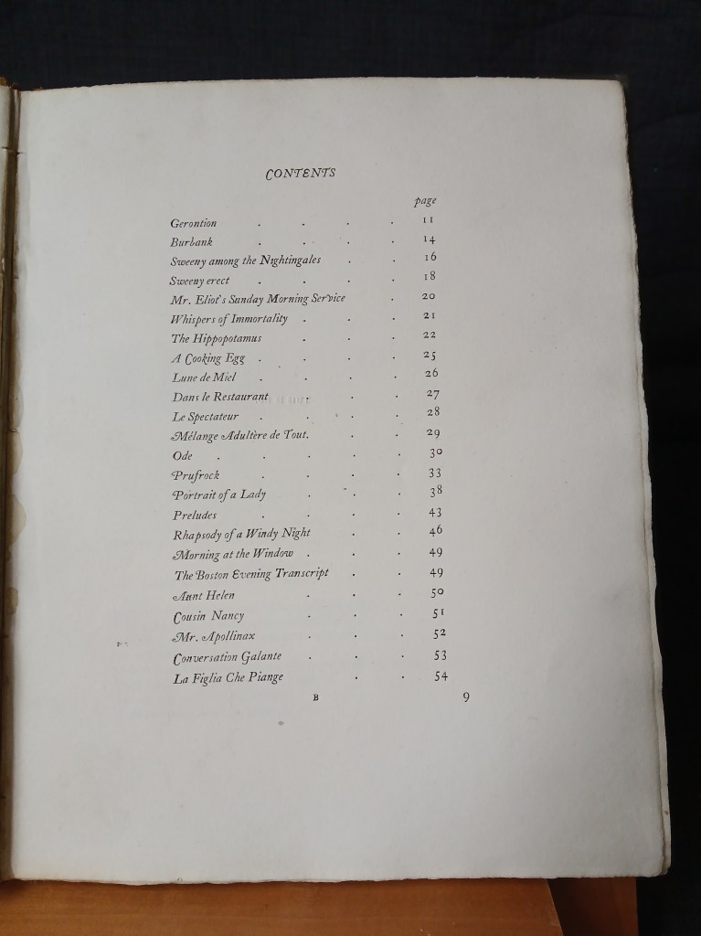 The Most egregious Error, however, a misprint in the name of the collection on the title Page (‘vus’ rather than ‘Vos’) was apparently Down to Eliot rather than Rodker.
