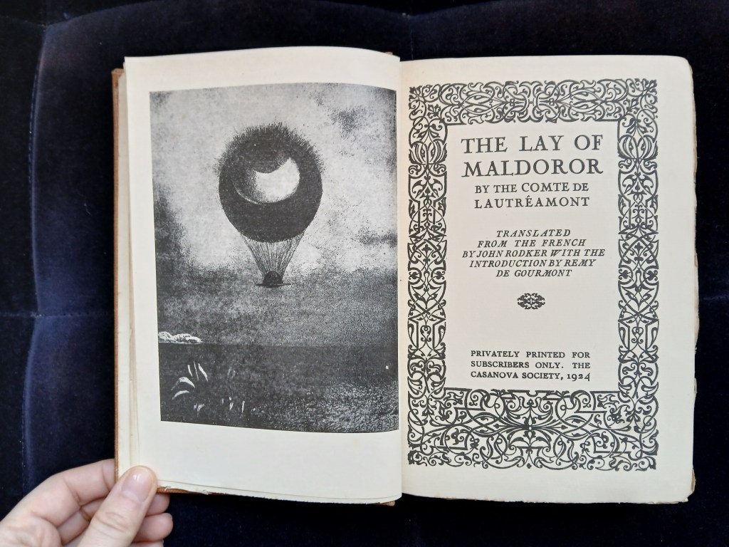 If J. K. Huysmans’s A Rebours was the bible of the decadents, Les Chants de Maldoror by Isidore Ducasse Alias Le Comte de Lautréamont was surely the Bible of Surrealism.